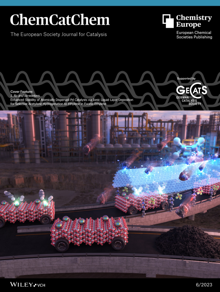 - Youngchan Kim, Taehyup Kim, Ki Hyuk Kang, Insoo Ro*, “Enhanced Stability of Atomically Dispersed Pd Catalysts via Ionic Liquid Layer Deposition for Selective Acetylene Hydrogenation to Ethylene in Excess Ethylene”, ChemCatChem, 2023 [link]