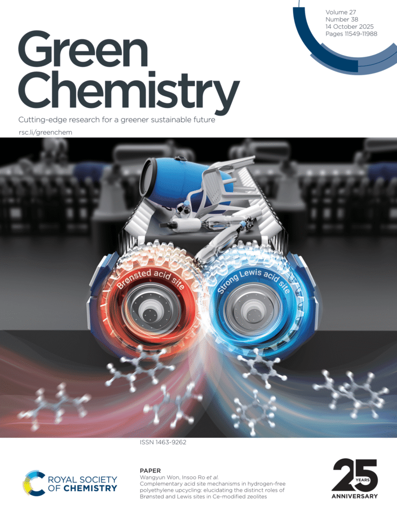 - Taeeun Kwon, Jonghyun Park, Ki Hyuk Kang, Dae Sung Jung, Wangyun Won, Insoo Ro*, “Complementary acid site mechanisms in hydrogen-free polyethylene upcycling: elucidating the distinct roles of Brønsted and Lewis sites in Ce-modified zeolites”, Green Chemistry, 2025 [link]
